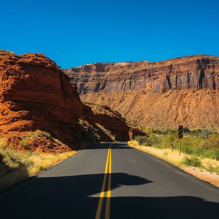 I crested the top and began one of the most jaw dropping gravel descents of my life. With the road closed to cars, and construction traffic thinning, I was again graced with a view of the desert valley below before being thrown into butt-puckering S curves that belong on a racetrack. This continued until I was spit back out onto brand new tarmac that swept me back down to the Colorado River. Yet again smacked with a hellacious headwind, I powered my way along the river, sprinting over the rollers, counting down the mile post markers to Moab, and riding the waves of adrenaline that come from true adventure.