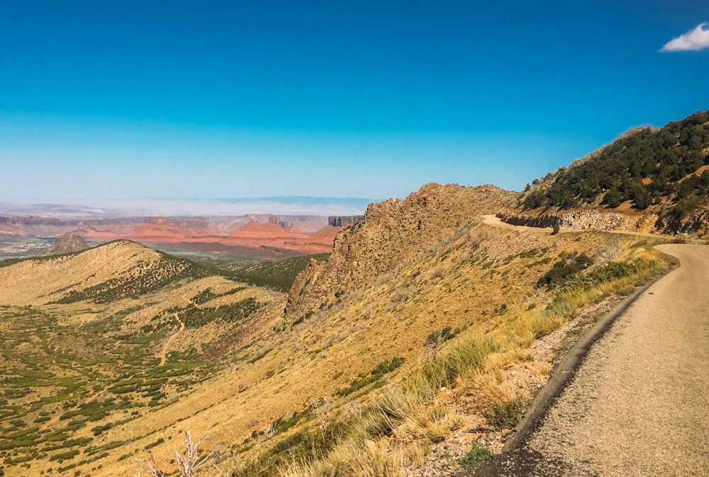 As I continued to climb, I started to find my legs and finally found protection from the wind in the hills. The road turned to switchbacks, eventually offering a reward for my work with a photo-worthy view back down into Moab. It was here I left my struggles of the morning to die. Game on.