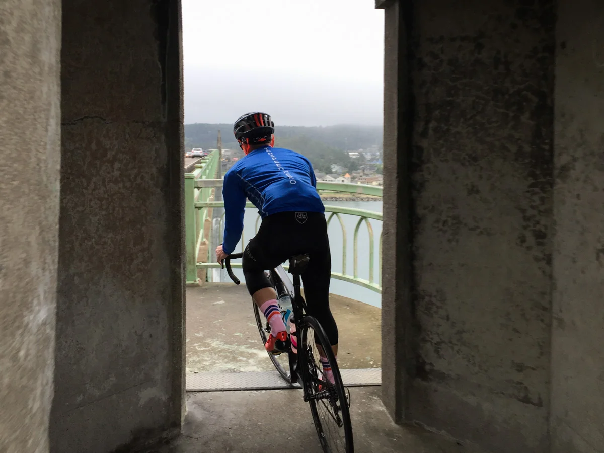 The route to the coast was probably the most varied route of the whole trip, passing through alpine style hills and forests, flat farm land, and coastal, temperate climate. Sun, fog, wind, and mist. Conversations sprung up between strangers and we slowly started becoming friends. With only 13 miles to go, our first mechanical threw us off our ETA by a bit but we made it in before sunset with enough time to murder some fajitas at the restaurant across the street from the hotel. That night's stretching and prep were the most thorough of the entire trip. We would soon begin to realize just getting out of our bibs was going to be a challenge the rest of the time.
